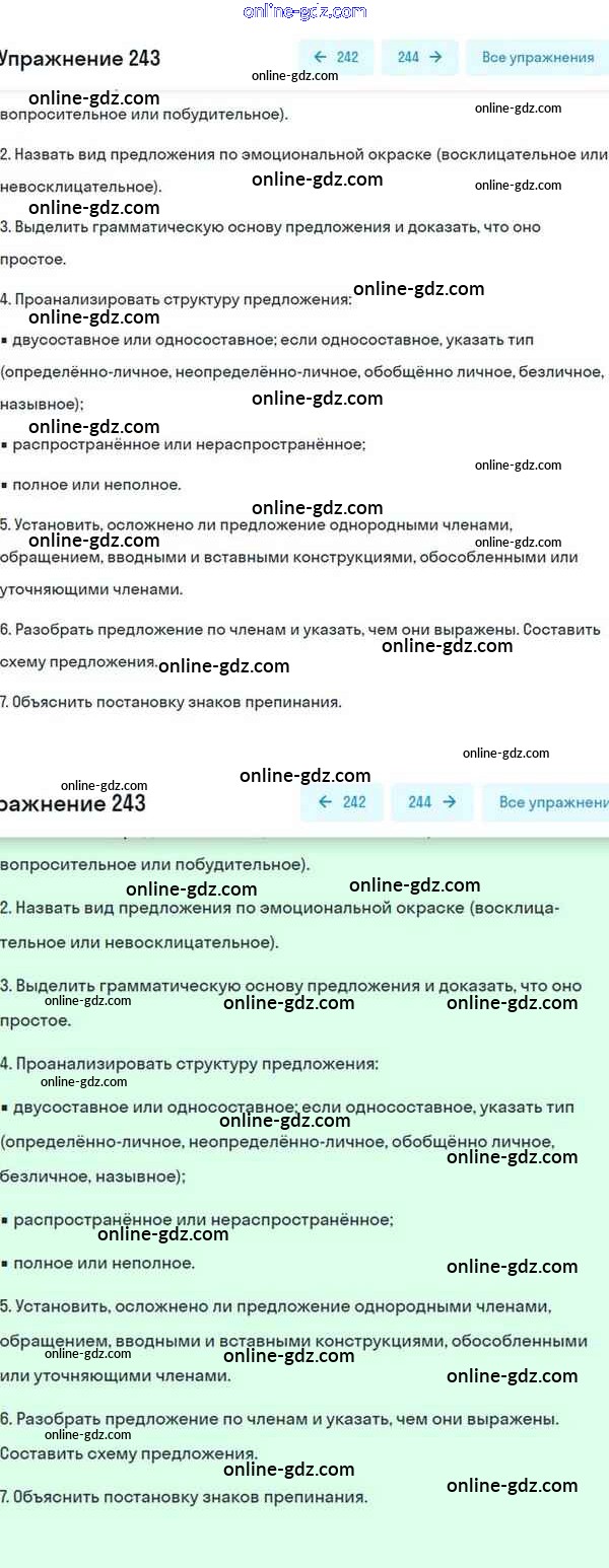 Готовые домашние задания по Русскому языку за 8 класс Учебник Разумовская, Львова Вертикаль 2015 - Упражнения 243