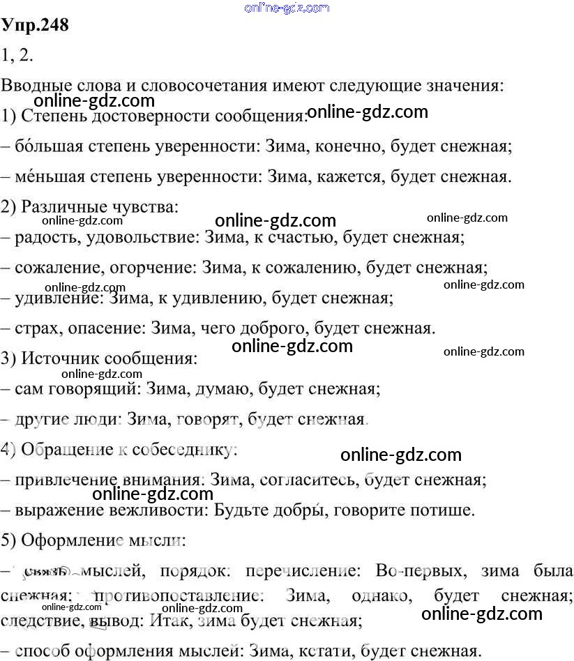 Готовые домашние задания по Русскому языку за 8 класс Учебник Разумовская, Львова Вертикаль 2013 - Упражнения 248