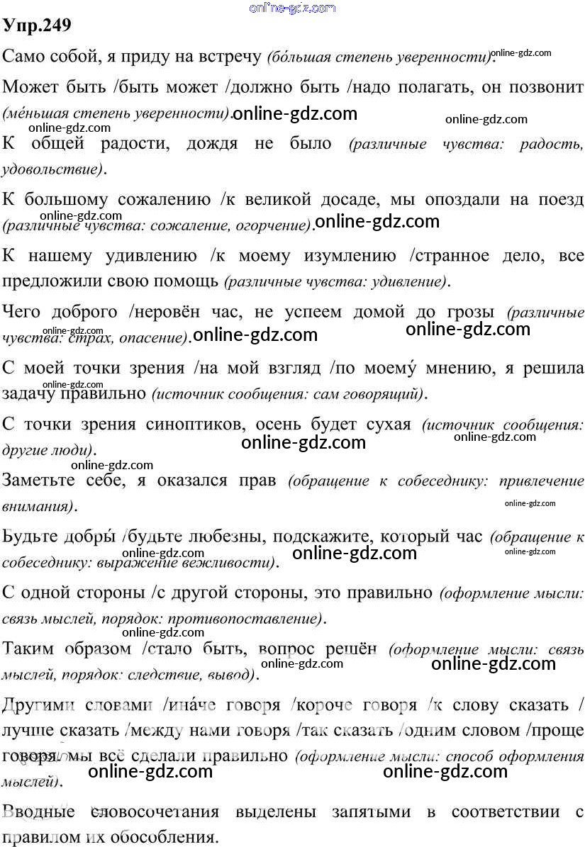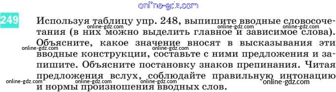 Готовые домашние задания по Русскому языку за 8 класс Учебник Разумовская, Львова Вертикаль 2013 - Упражнения 249