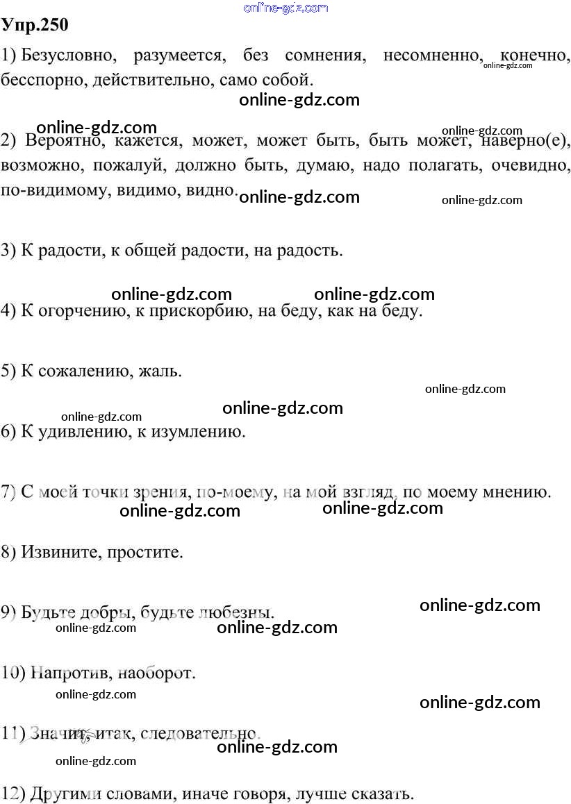 Готовые домашние задания по Русскому языку за 8 класс Учебник Разумовская, Львова Вертикаль 2013 - Упражнения 250
