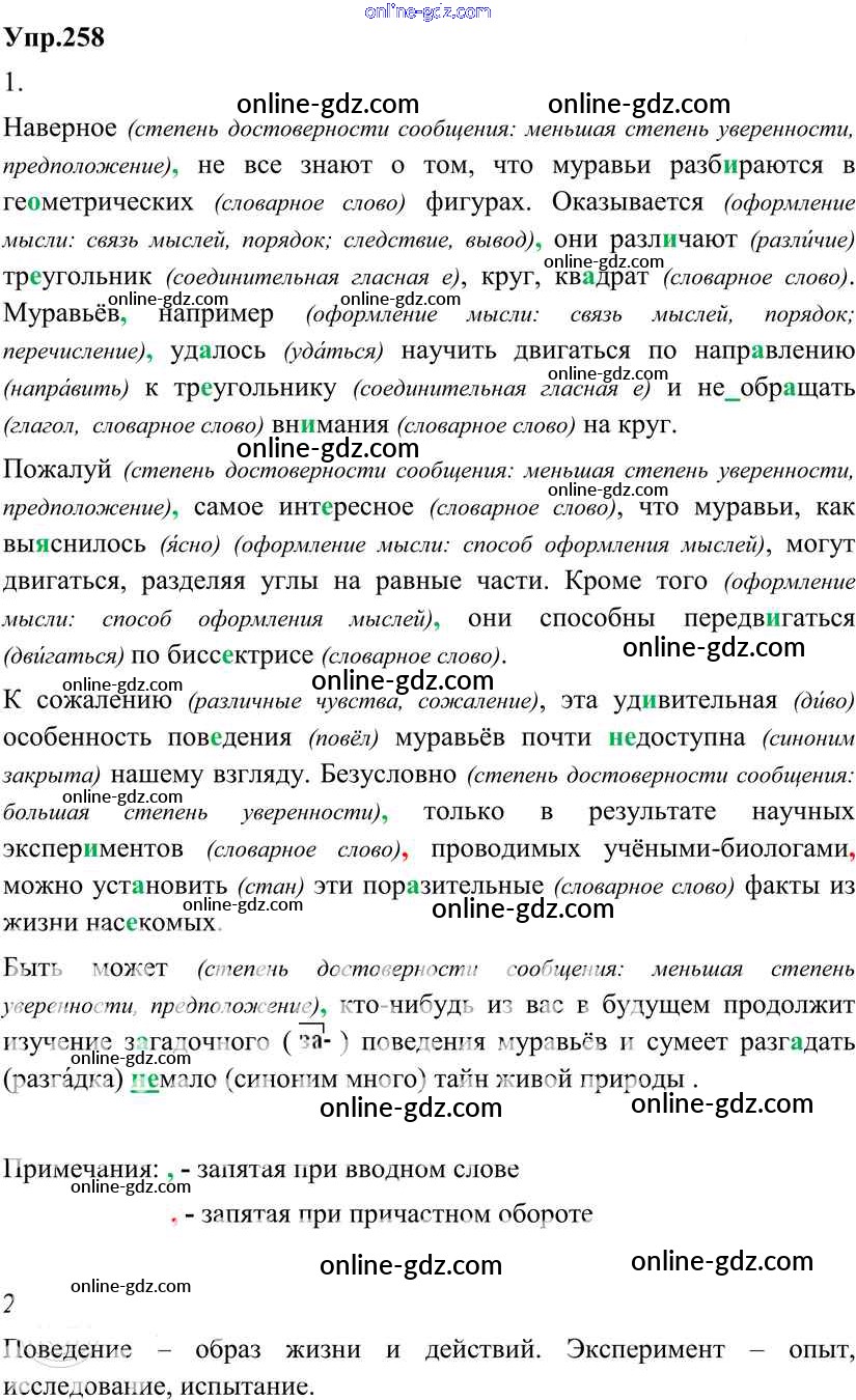 Готовые домашние задания по Русскому языку за 8 класс Учебник Разумовская, Львова Вертикаль 2013 - Упражнения 258