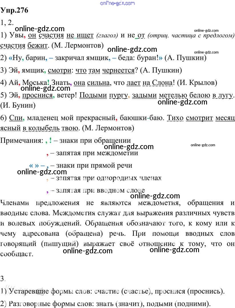 Готовые домашние задания по Русскому языку за 8 класс Учебник Разумовская, Львова Вертикаль 2013 - Упражнения 276