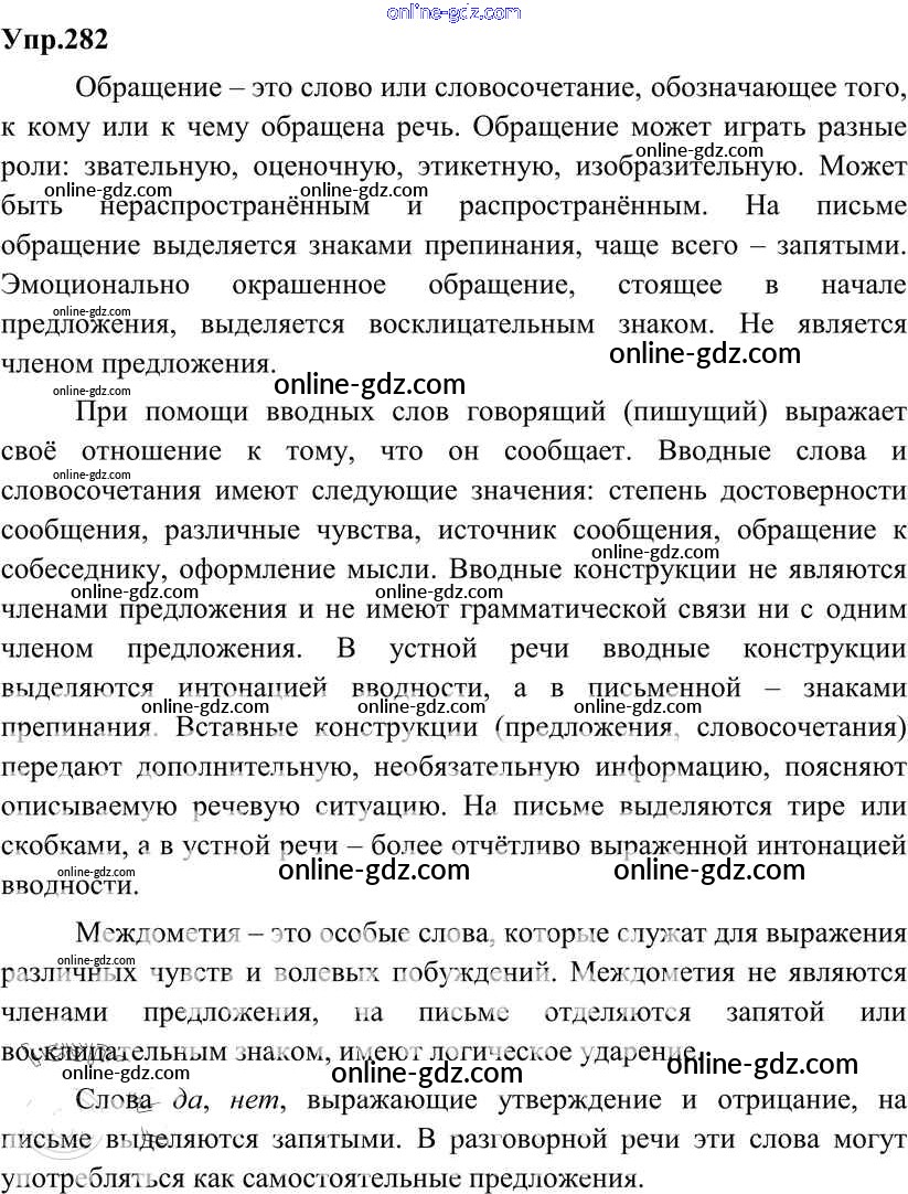 Готовые домашние задания по Русскому языку за 8 класс Учебник Разумовская, Львова Вертикаль 2013 - Упражнения 282