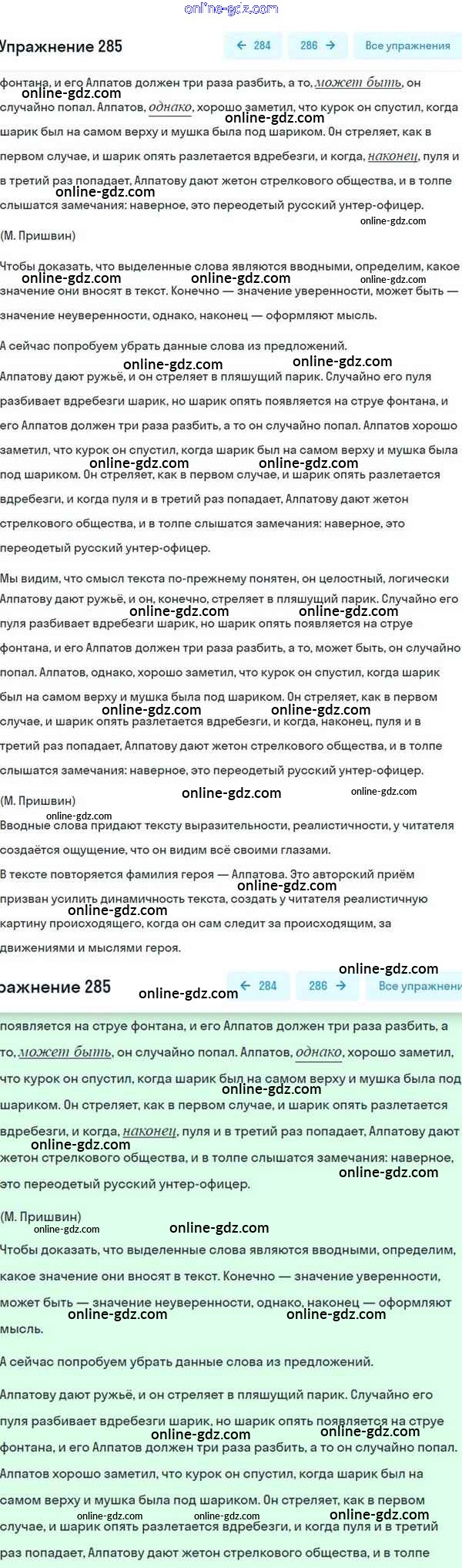 Готовые домашние задания по Русскому языку за 8 класс Учебник Разумовская, Львова Вертикаль 2015 - Упражнения 285