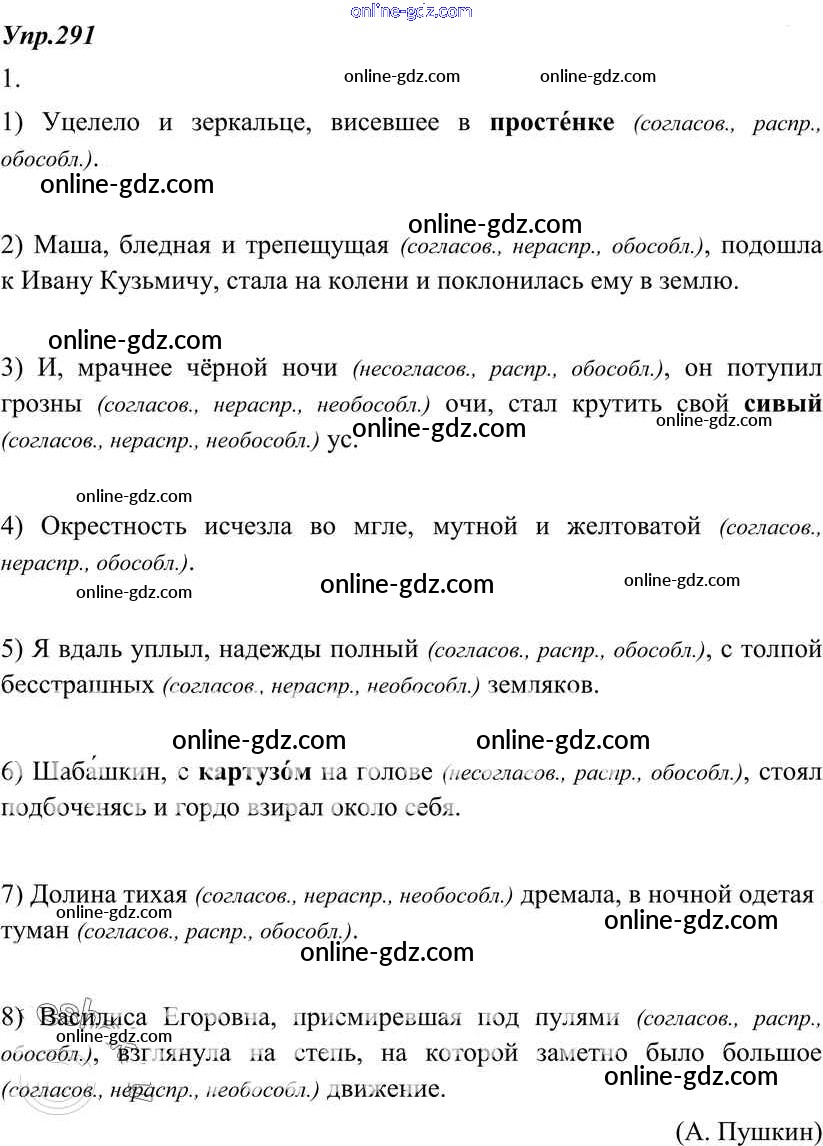 Готовые домашние задания по Русскому языку за 8 класс Учебник Разумовская, Львова Вертикаль 2013 - Упражнения 291