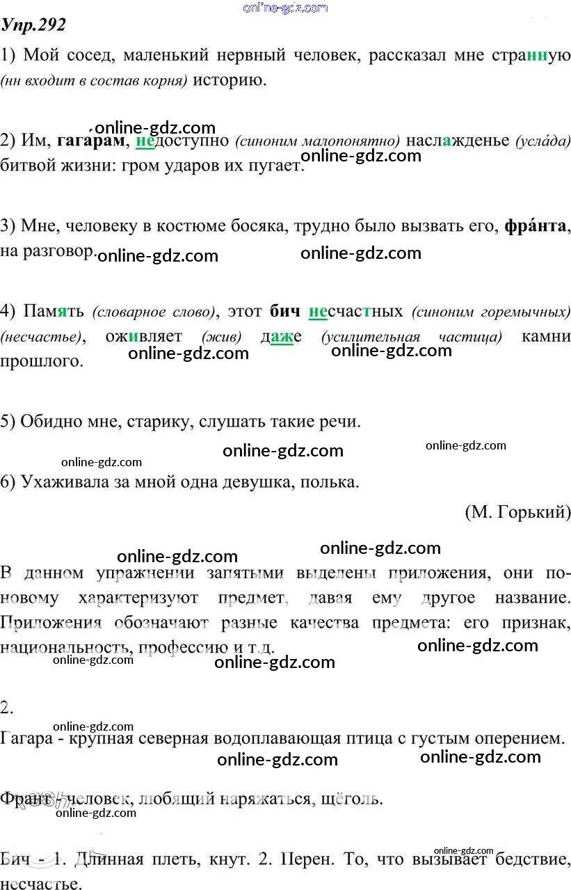 Готовые домашние задания по Русскому языку за 8 класс Учебник Разумовская, Львова Вертикаль 2013 - Упражнения 292