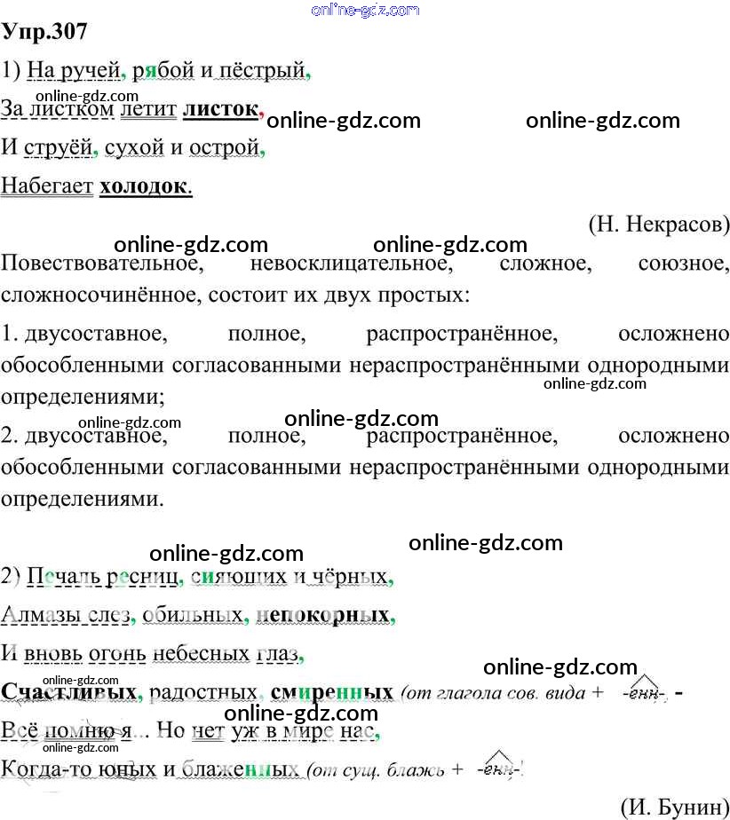Готовые домашние задания по Русскому языку за 8 класс Учебник Разумовская, Львова Вертикаль 2013 - Упражнения 307