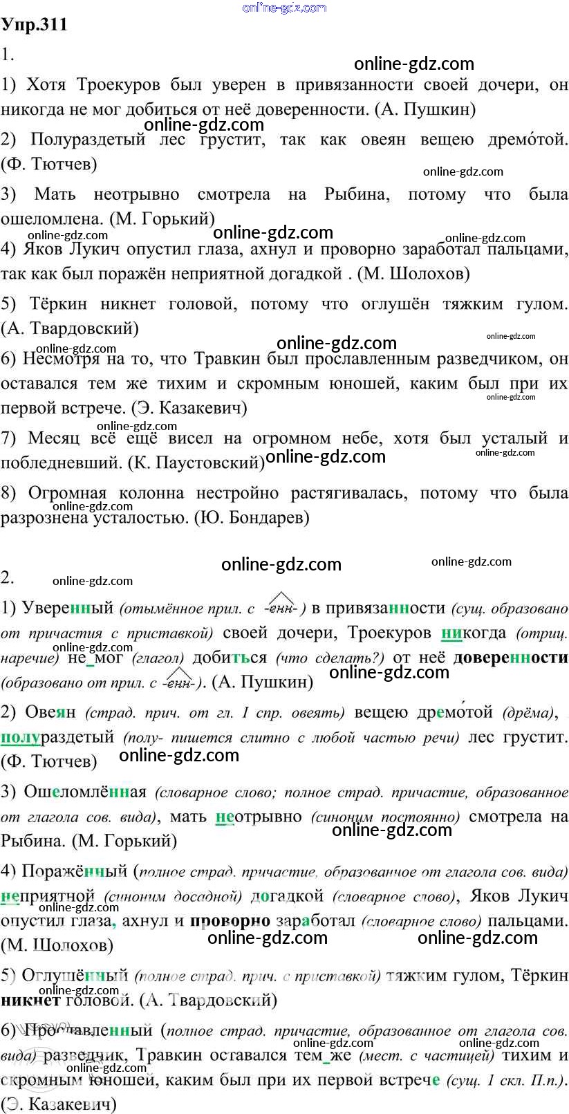 Готовые домашние задания по Русскому языку за 8 класс Учебник Разумовская, Львова Вертикаль 2013 - Упражнения 311