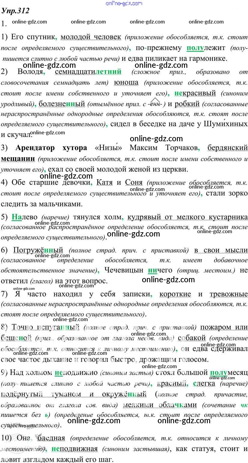 Готовые домашние задания по Русскому языку за 8 класс Учебник Разумовская, Львова Вертикаль 2013 - Упражнения 312