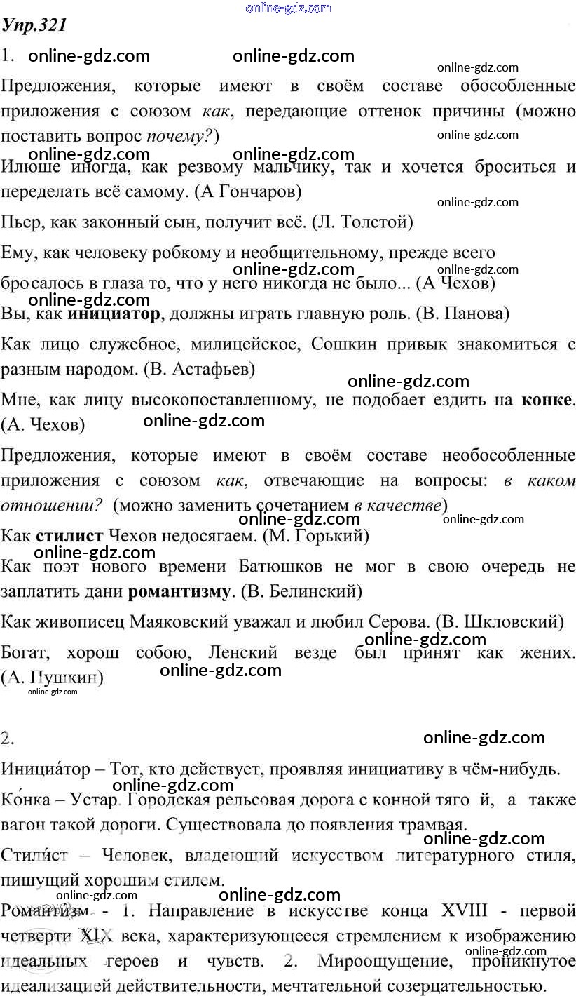 Готовые домашние задания по Русскому языку за 8 класс Учебник Разумовская, Львова Вертикаль 2013 - Упражнения 321