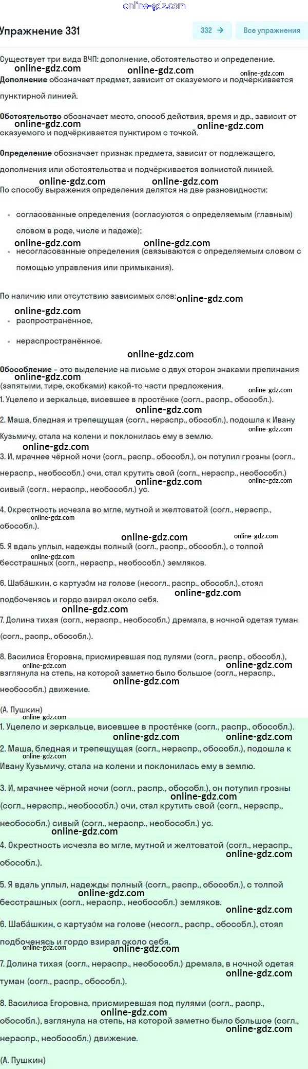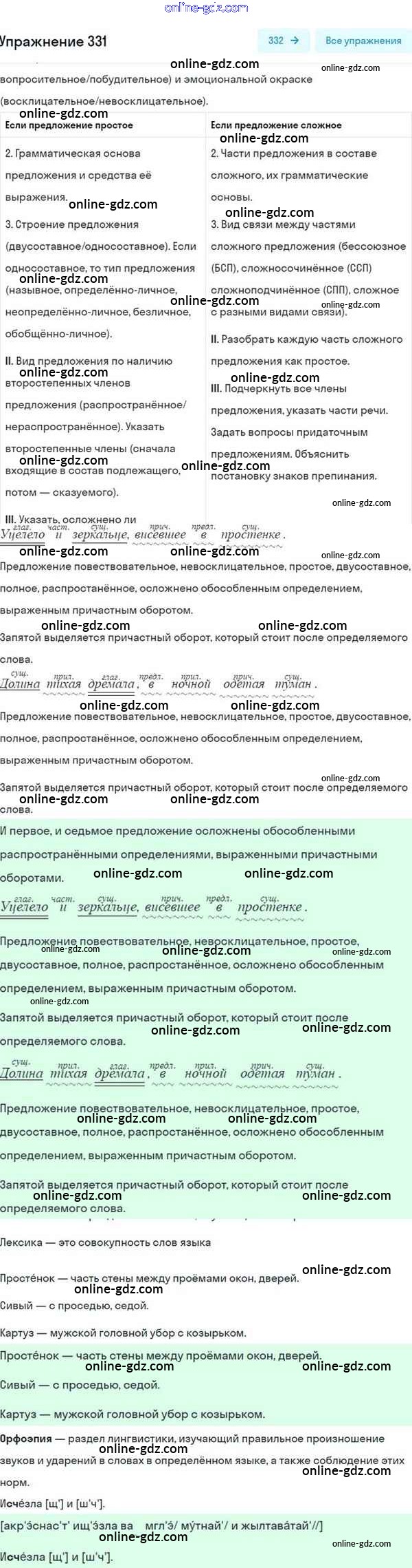 Готовые домашние задания по Русскому языку за 8 класс Учебник Разумовская, Львова Вертикаль 2015 - Упражнения 331