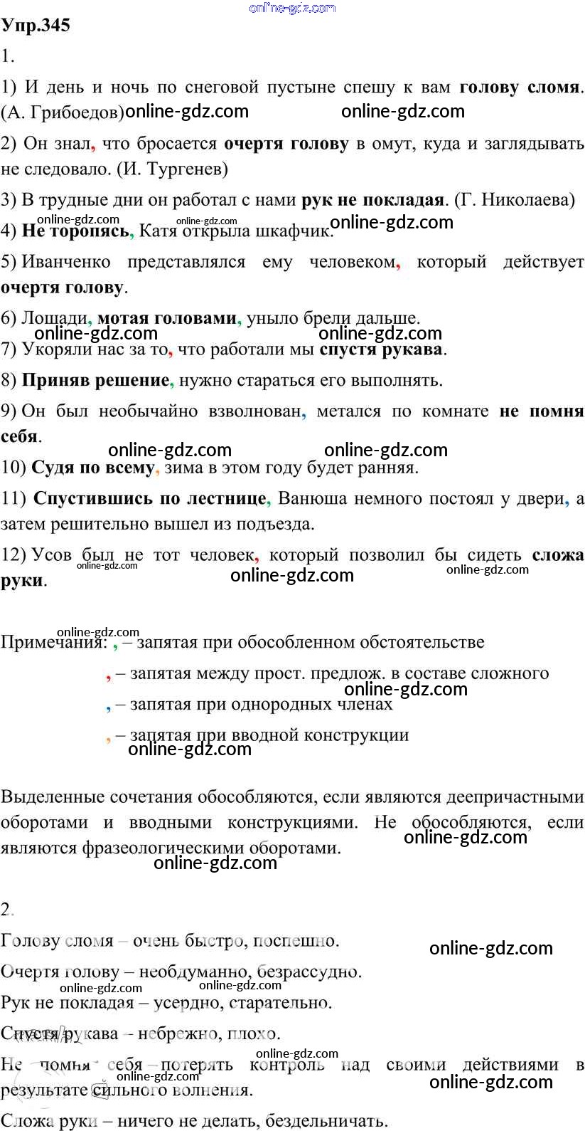 Готовые домашние задания по Русскому языку за 8 класс Учебник Разумовская, Львова Вертикаль 2013 - Упражнения 345