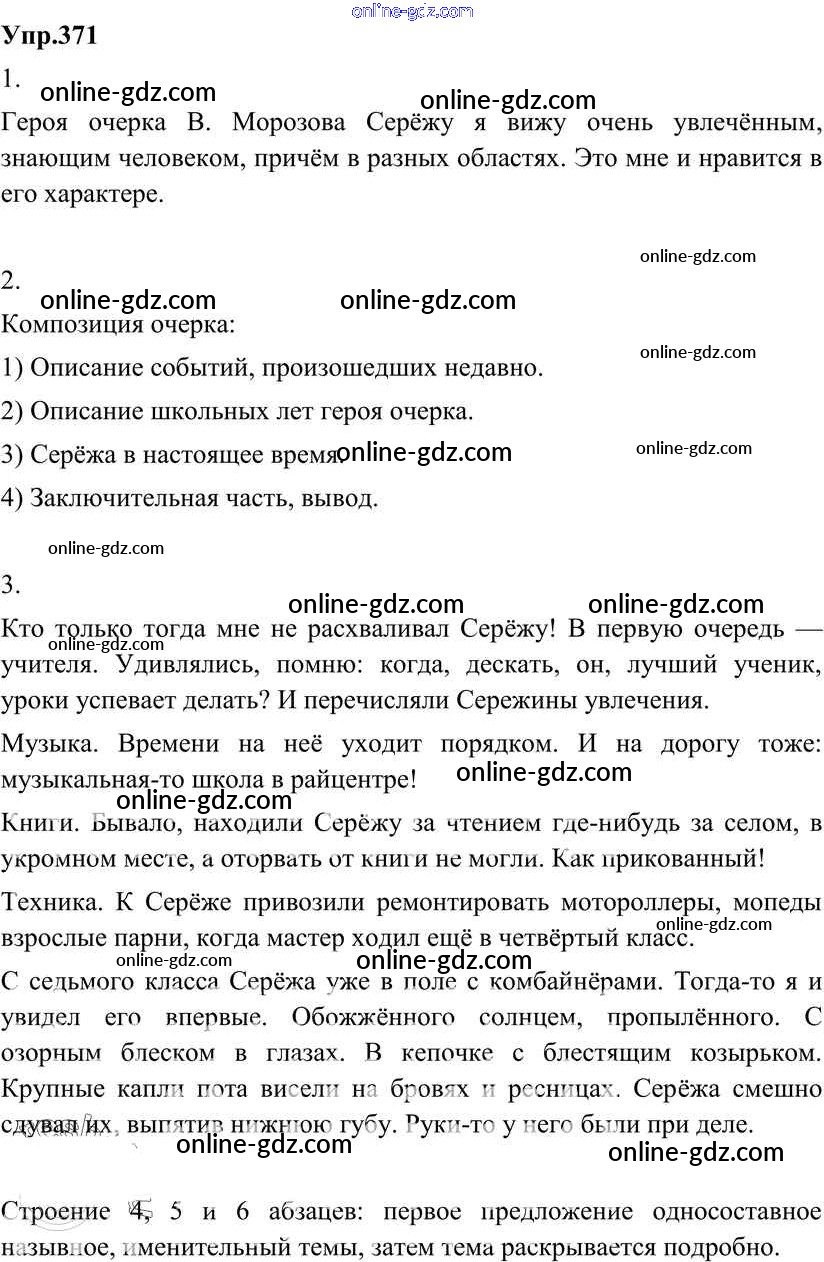 Готовые домашние задания по Русскому языку за 8 класс Учебник Разумовская, Львова Вертикаль 2013 - Упражнения 371