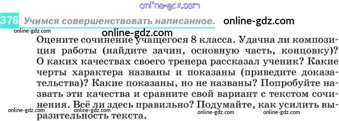 Готовые домашние задания по Русскому языку за 8 класс Учебник Разумовская, Львова Вертикаль 2013 - Упражнения 376