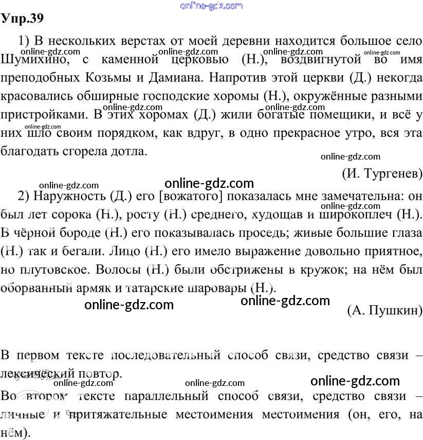 Готовые домашние задания по Русскому языку за 8 класс Учебник Разумовская, Львова Вертикаль 2013 - Упражнения 39