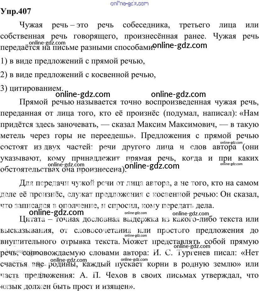Готовые домашние задания по Русскому языку за 8 класс Учебник Разумовская, Львова Вертикаль 2013 - Упражнения 407