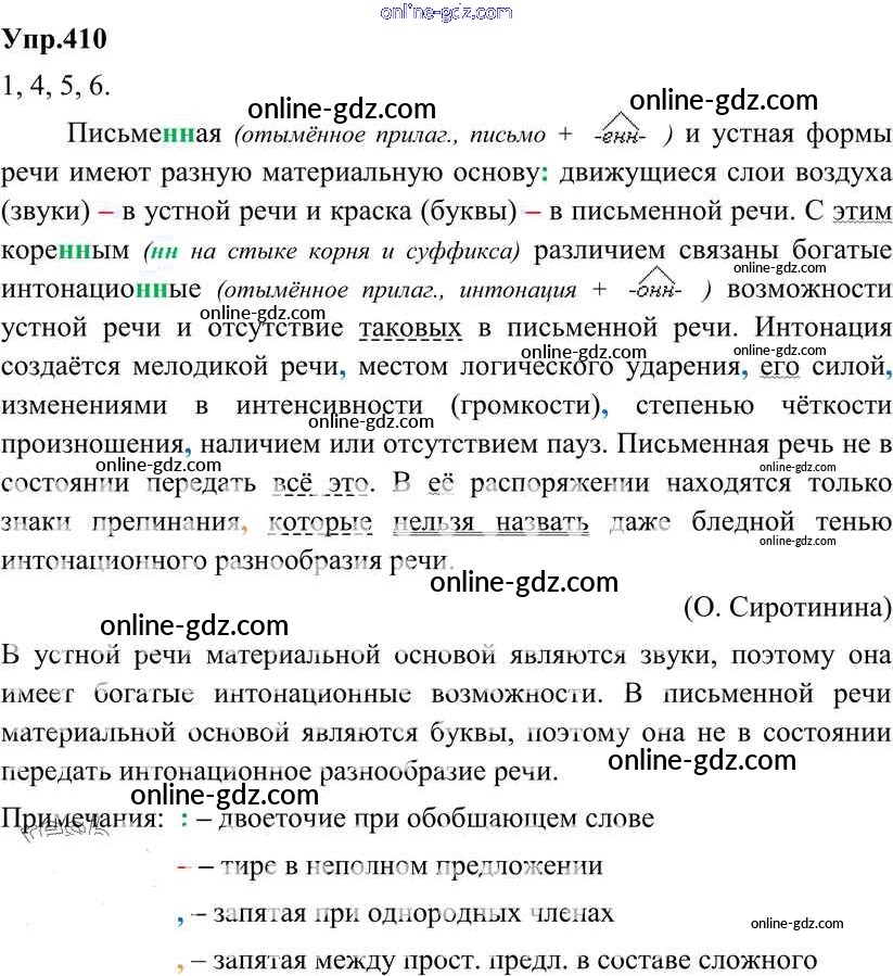Готовые домашние задания по Русскому языку за 8 класс Учебник Разумовская, Львова Вертикаль 2013 - Упражнения 410