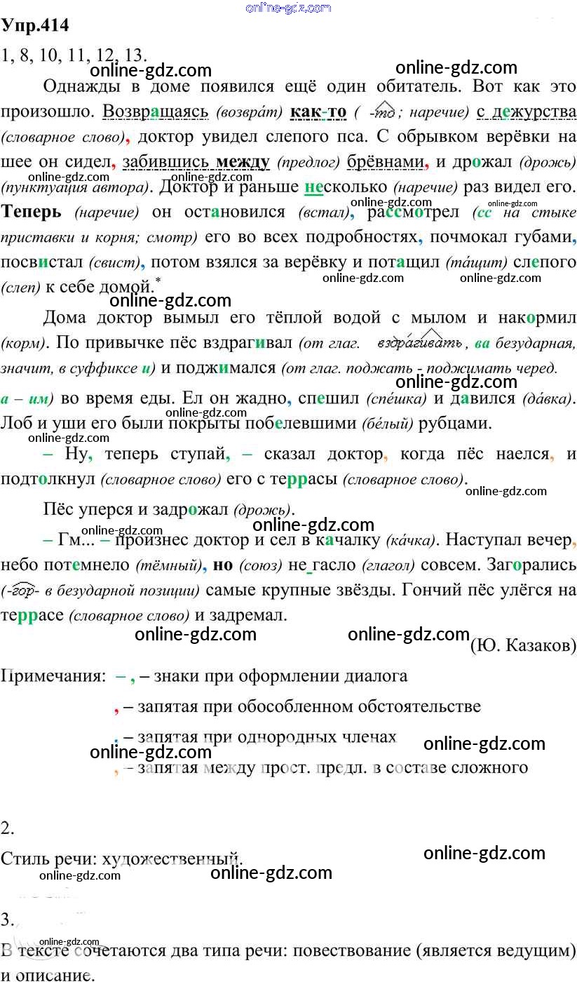 Готовые домашние задания по Русскому языку за 8 класс Учебник Разумовская, Львова Вертикаль 2013 - Упражнения 414