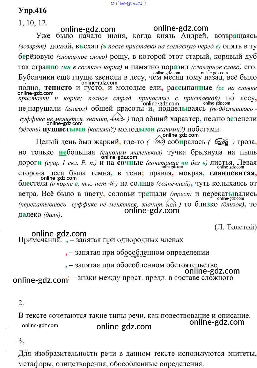Готовые домашние задания по Русскому языку за 8 класс Учебник Разумовская, Львова Вертикаль 2013 - Упражнения 416