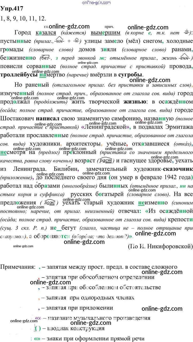 Готовые домашние задания по Русскому языку за 8 класс Учебник Разумовская, Львова Вертикаль 2013 - Упражнения 417