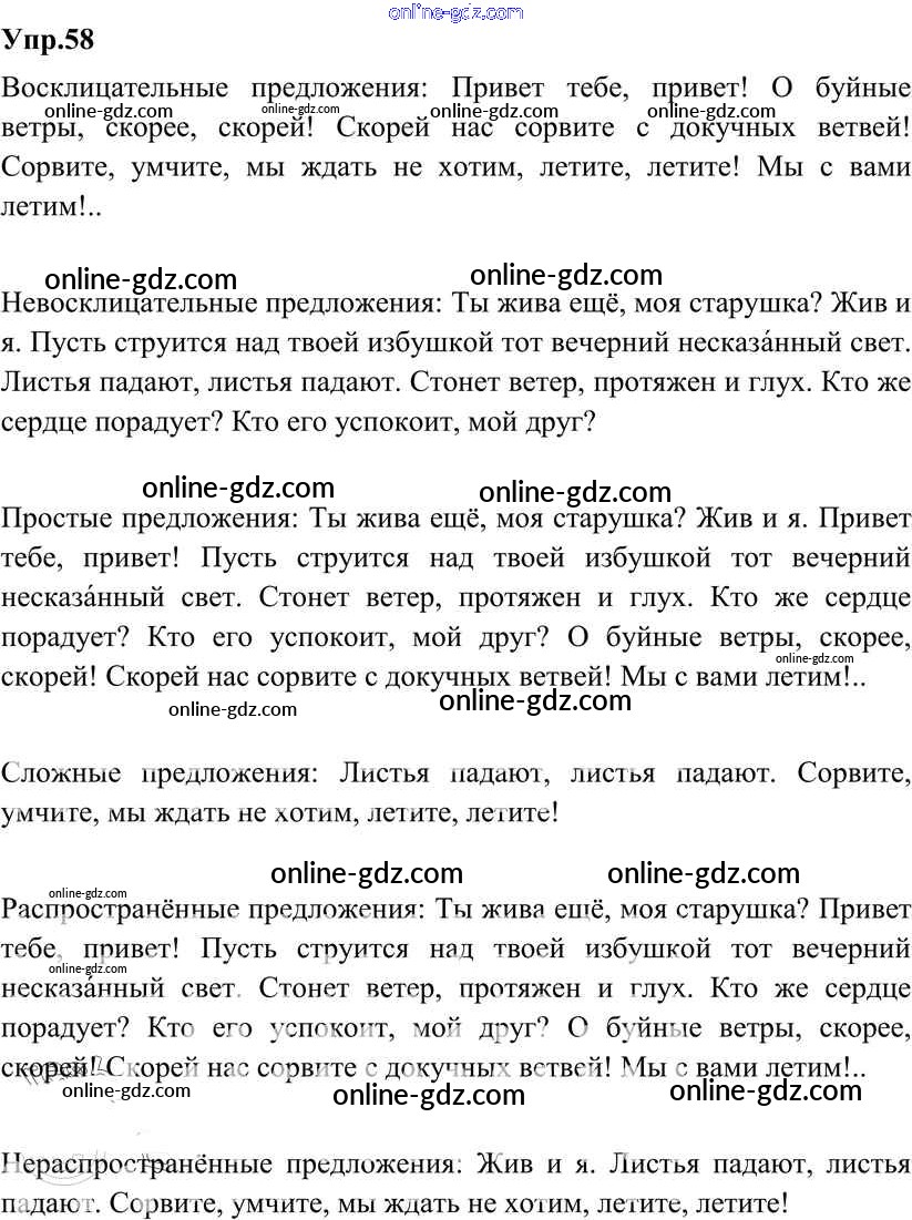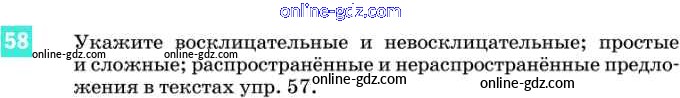 Готовые домашние задания по Русскому языку за 8 класс Учебник Разумовская, Львова Вертикаль 2013 - Упражнения 58