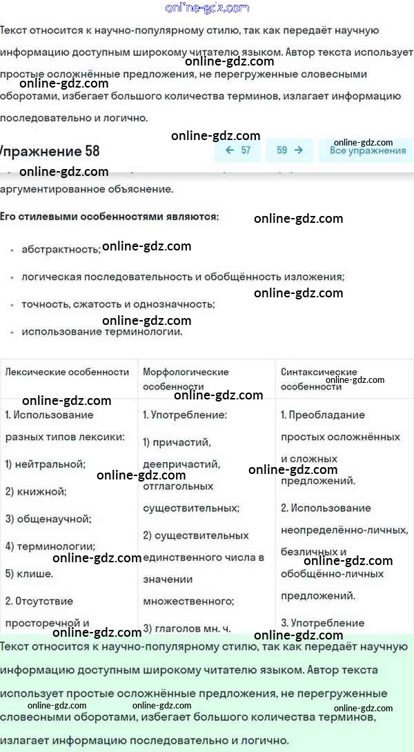 Готовые домашние задания по Русскому языку за 8 класс Учебник Разумовская, Львова Вертикаль 2015 - Упражнения 58