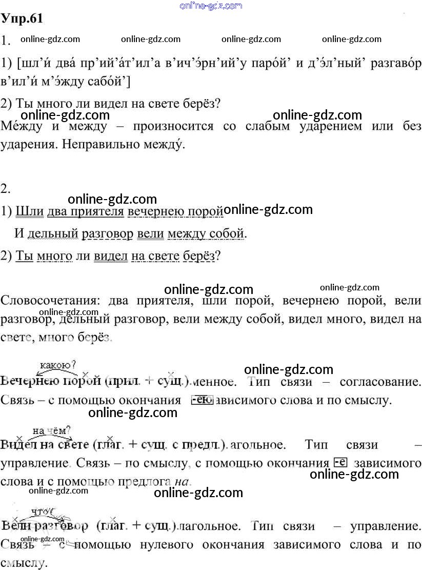 Готовые домашние задания по Русскому языку за 8 класс Учебник Разумовская, Львова Вертикаль 2013 - Упражнения 61