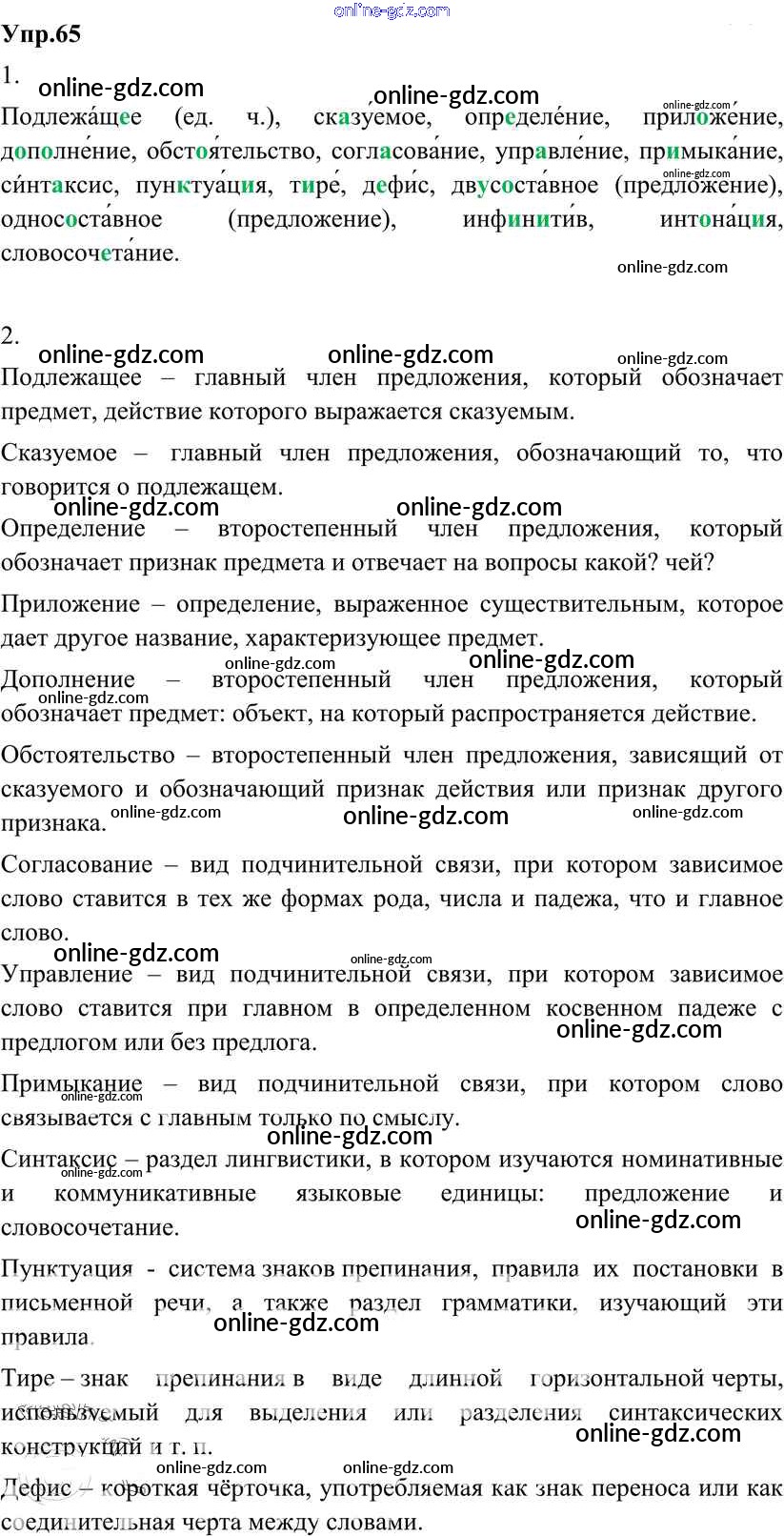 Готовые домашние задания по Русскому языку за 8 класс Учебник Разумовская, Львова Вертикаль 2013 - Упражнения 65