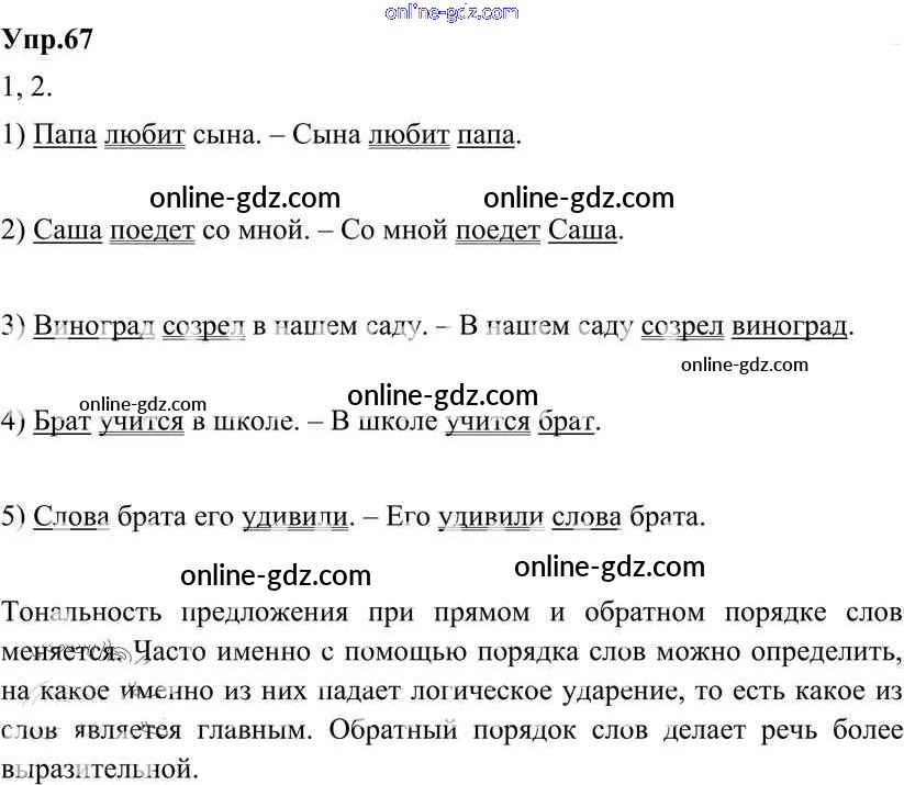 Готовые домашние задания по Русскому языку за 8 класс Учебник Разумовская, Львова Вертикаль 2013 - Упражнения 67