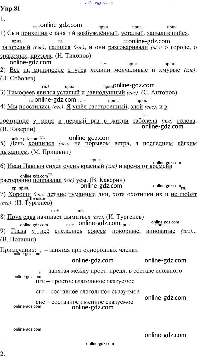 Готовые домашние задания по Русскому языку за 8 класс Учебник Разумовская, Львова Вертикаль 2013 - Упражнения 81