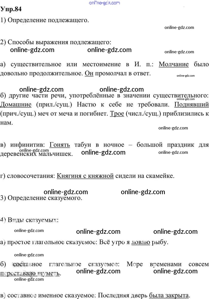 Готовые домашние задания по Русскому языку за 8 класс Учебник Разумовская, Львова Вертикаль 2013 - Упражнения 84