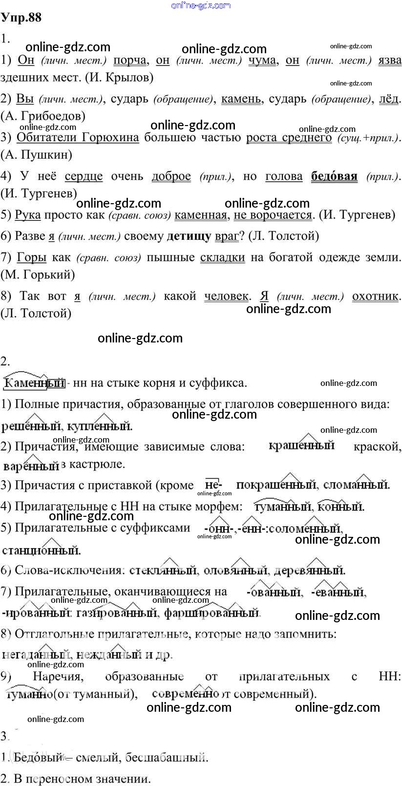 Готовые домашние задания по Русскому языку за 8 класс Учебник Разумовская, Львова Вертикаль 2013 - Упражнения 88