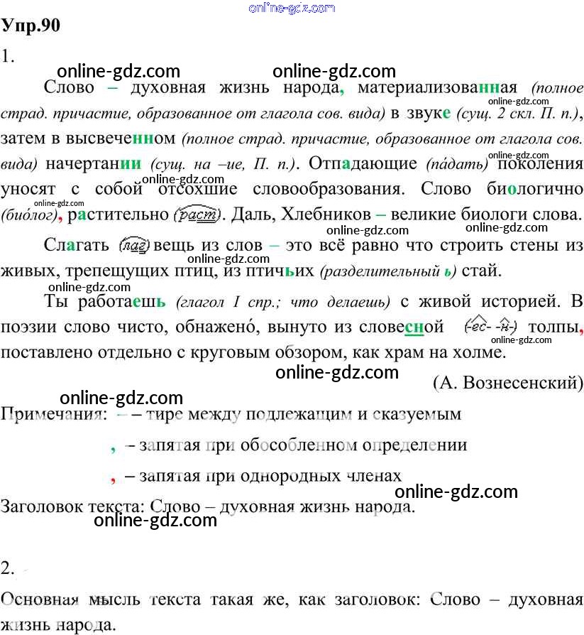 Готовые домашние задания по Русскому языку за 8 класс Учебник Разумовская, Львова Вертикаль 2013 - Упражнения 90