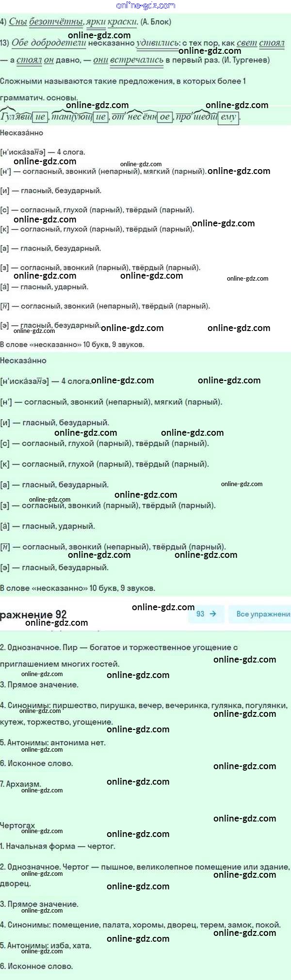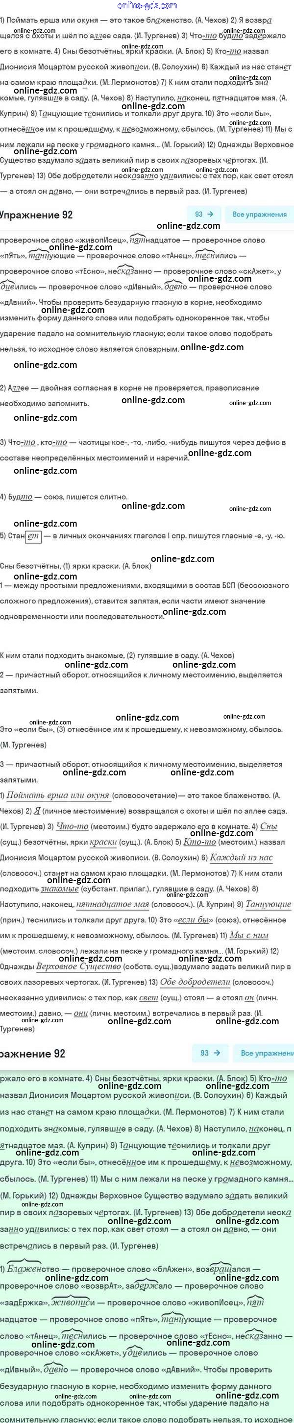 Готовые домашние задания по Русскому языку за 8 класс Учебник Разумовская, Львова Вертикаль 2015 - Упражнения 92