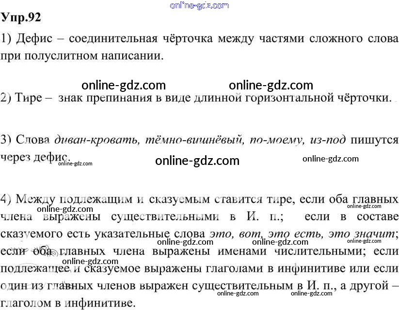 Готовые домашние задания по Русскому языку за 8 класс Учебник Разумовская, Львова Вертикаль 2013 - Упражнения 92