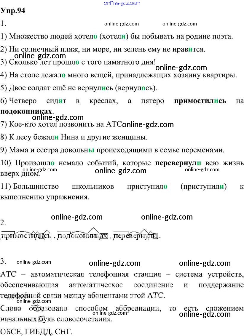 Готовые домашние задания по Русскому языку за 8 класс Учебник Разумовская, Львова Вертикаль 2013 - Упражнения 94