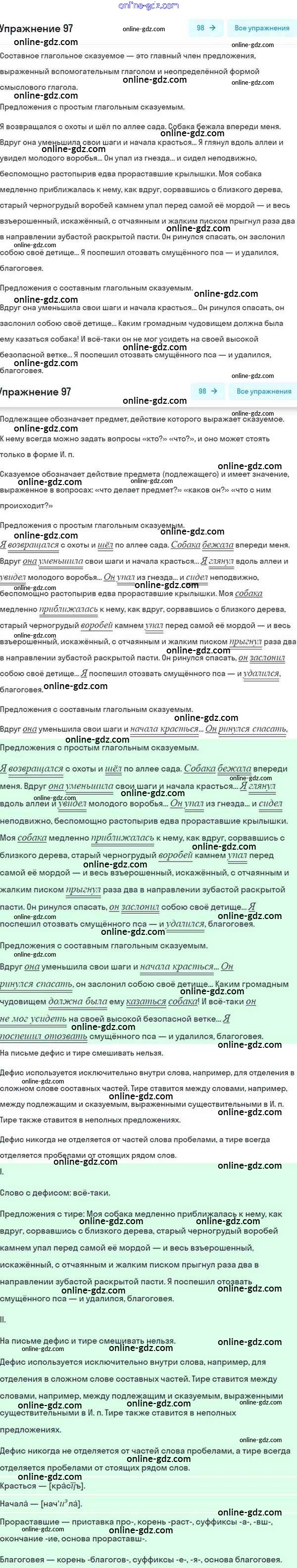 Готовые домашние задания по Русскому языку за 8 класс Учебник Разумовская, Львова Вертикаль 2015 - Упражнения 97