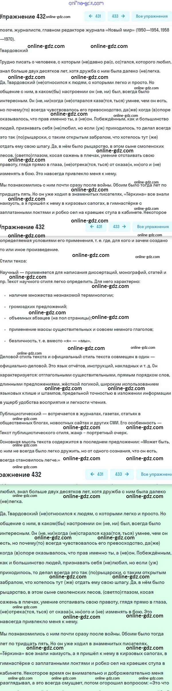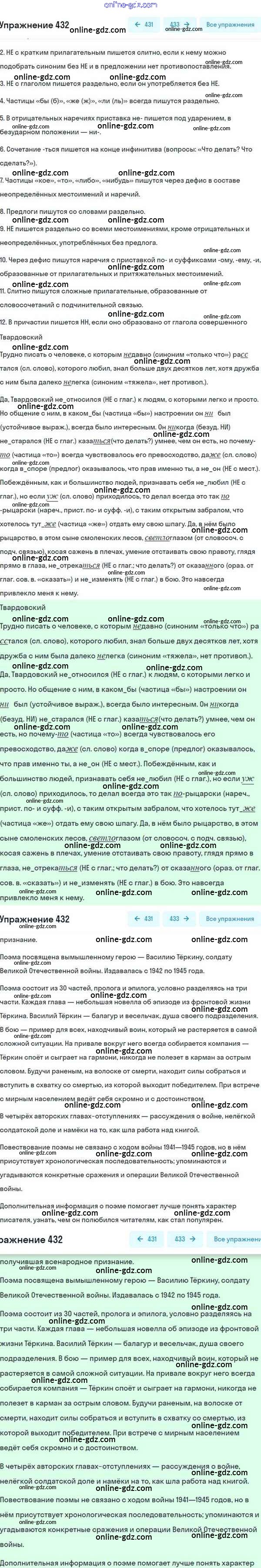 Готовые домашние задания по Русскому языку за 8 класс Учебник Разумовская, Львова Вертикаль 2015 - Упражнения 432
