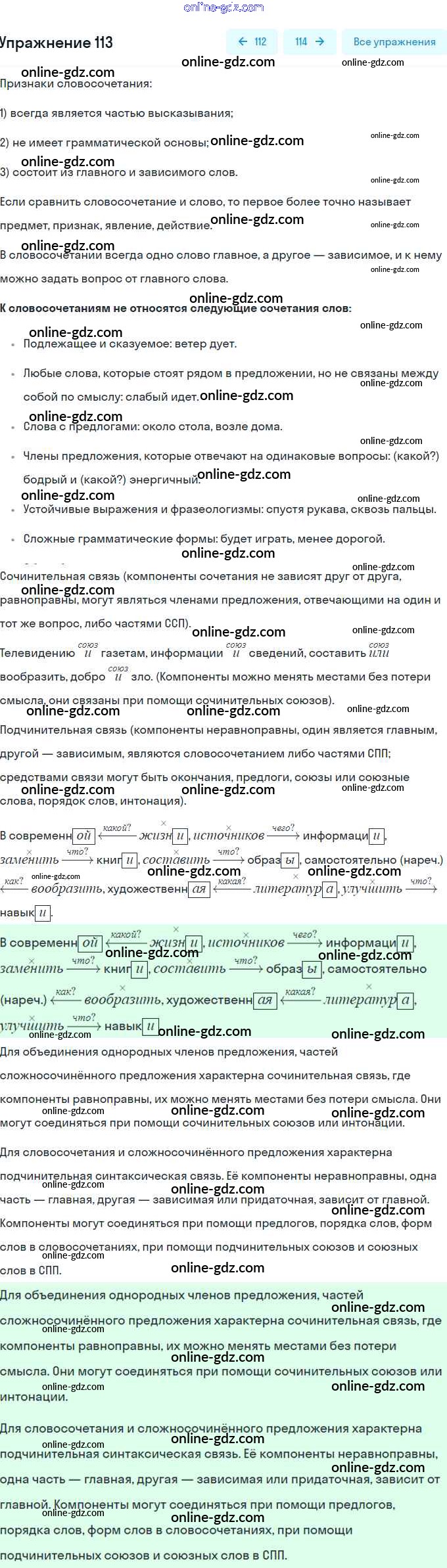 Готовые домашние задания по Русскому языку за 8 класс Учебник Рыбченкова, Александрова 2015 - Упражнения 113