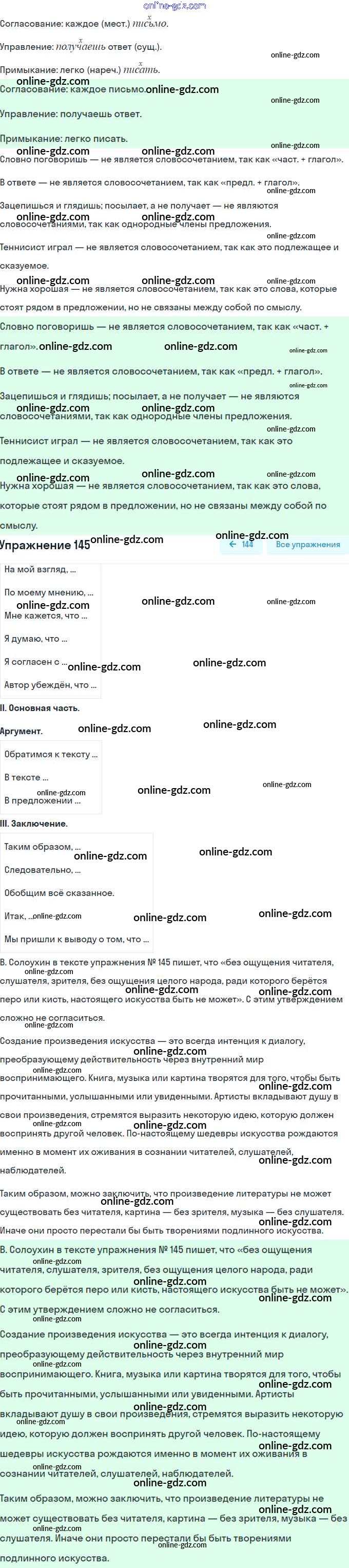 Готовые домашние задания по Русскому языку за 8 класс Учебник Рыбченкова, Александрова 2015 - Упражнения 145