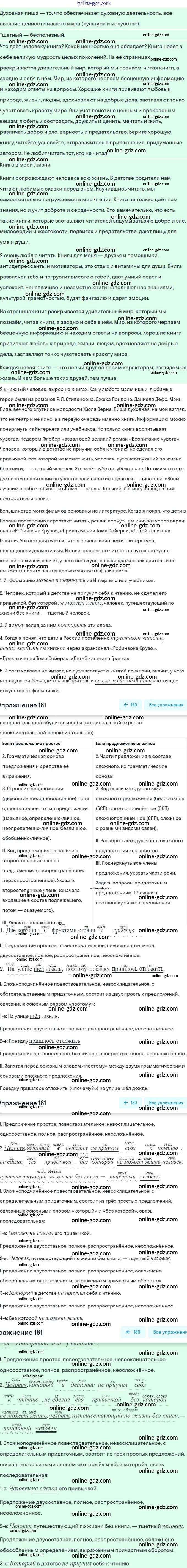 Готовые домашние задания по Русскому языку за 8 класс Учебник Рыбченкова, Александрова 2015 - Упражнения 181