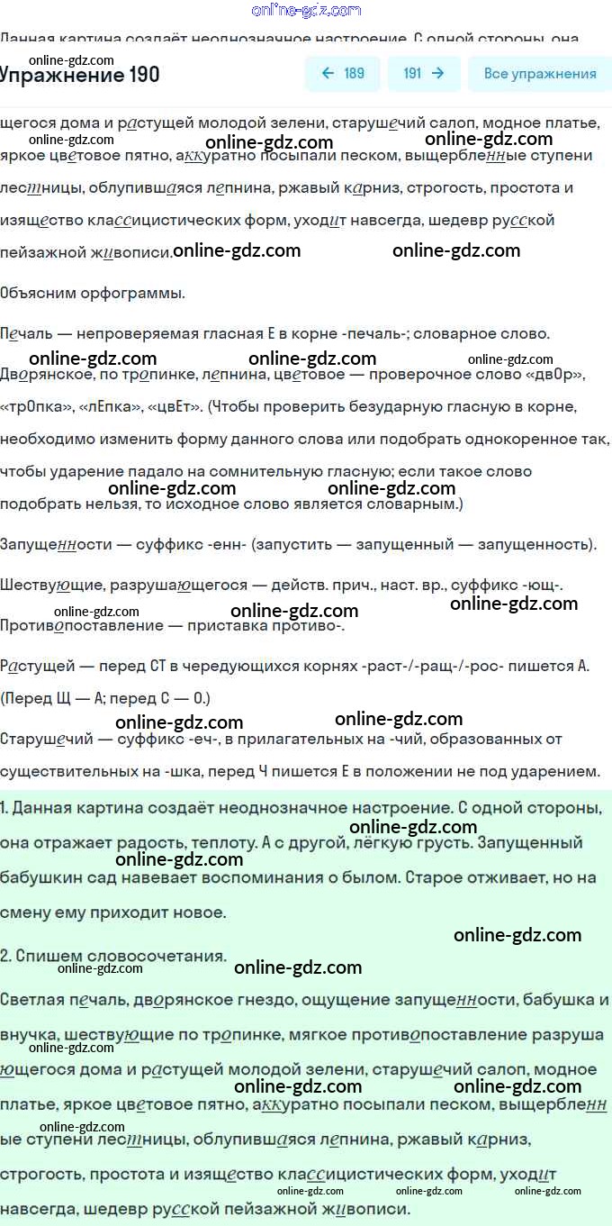 Готовые домашние задания по Русскому языку за 8 класс Учебник Рыбченкова, Александрова 2015 - Упражнения 190