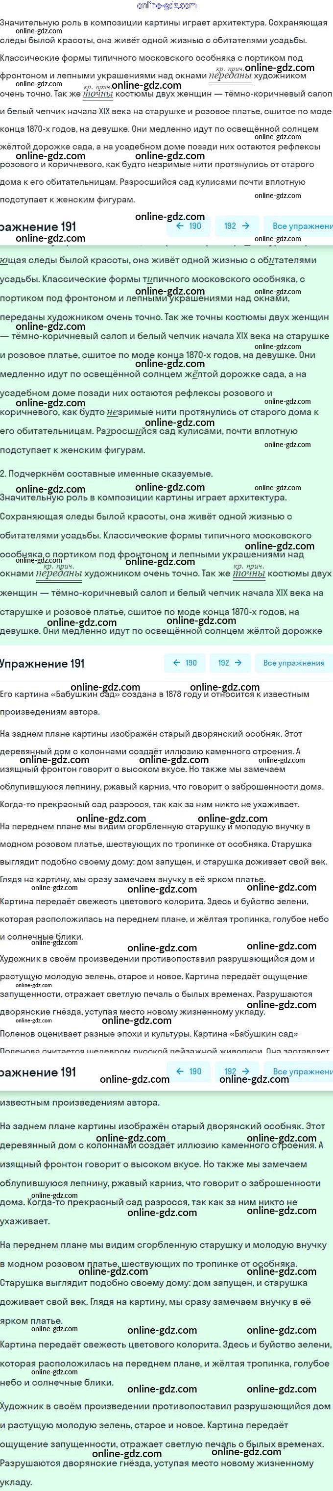 Готовые домашние задания по Русскому языку за 8 класс Учебник Рыбченкова, Александрова 2015 - Упражнения 191