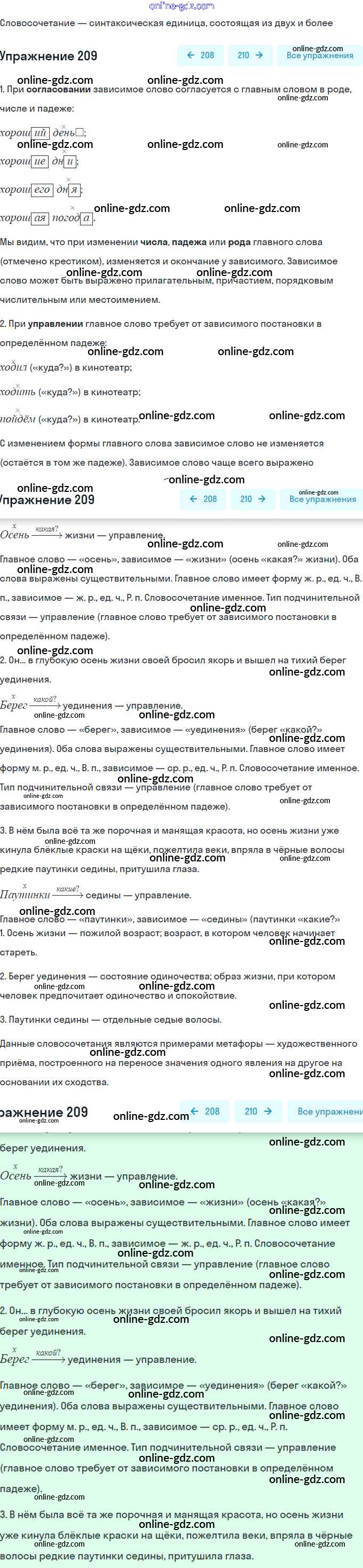 Готовые домашние задания по Русскому языку за 8 класс Учебник Рыбченкова, Александрова 2015 - Упражнения 209