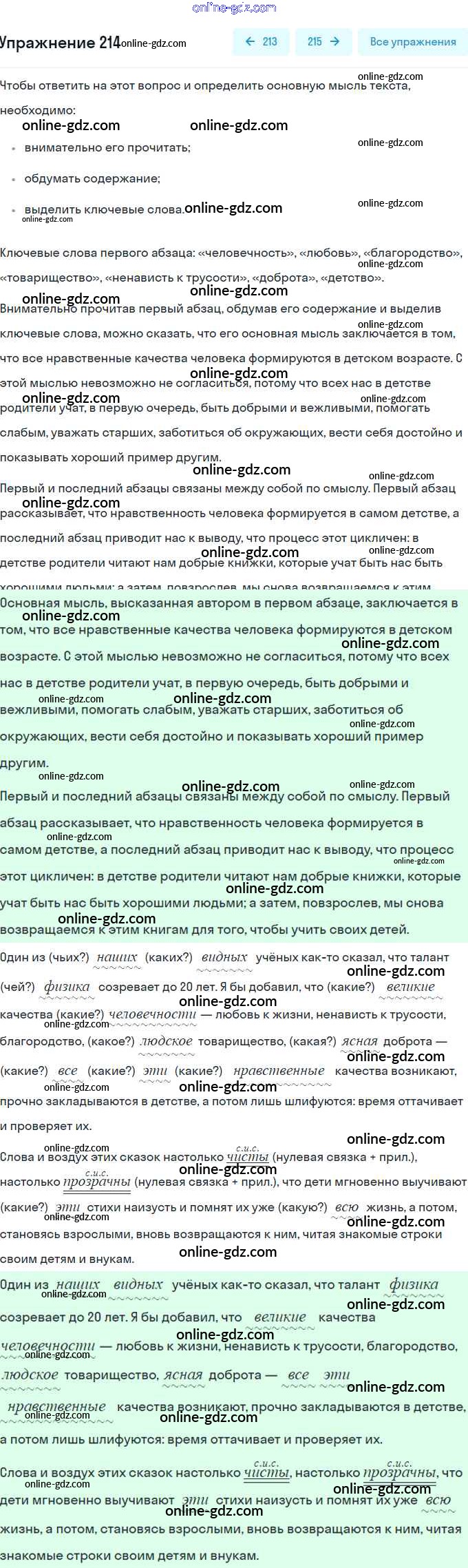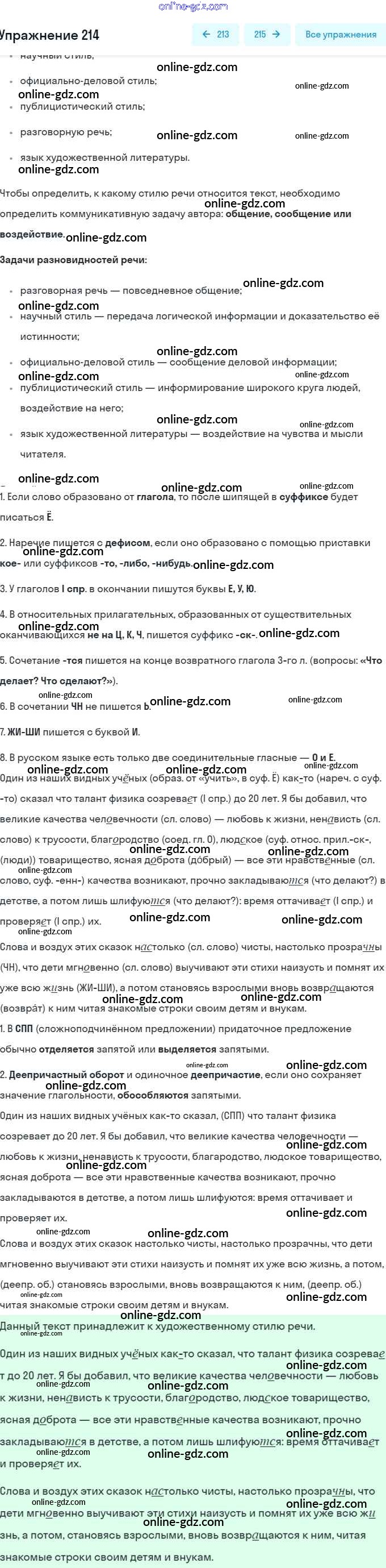 Готовые домашние задания по Русскому языку за 8 класс Учебник Рыбченкова, Александрова 2015 - Упражнения 214