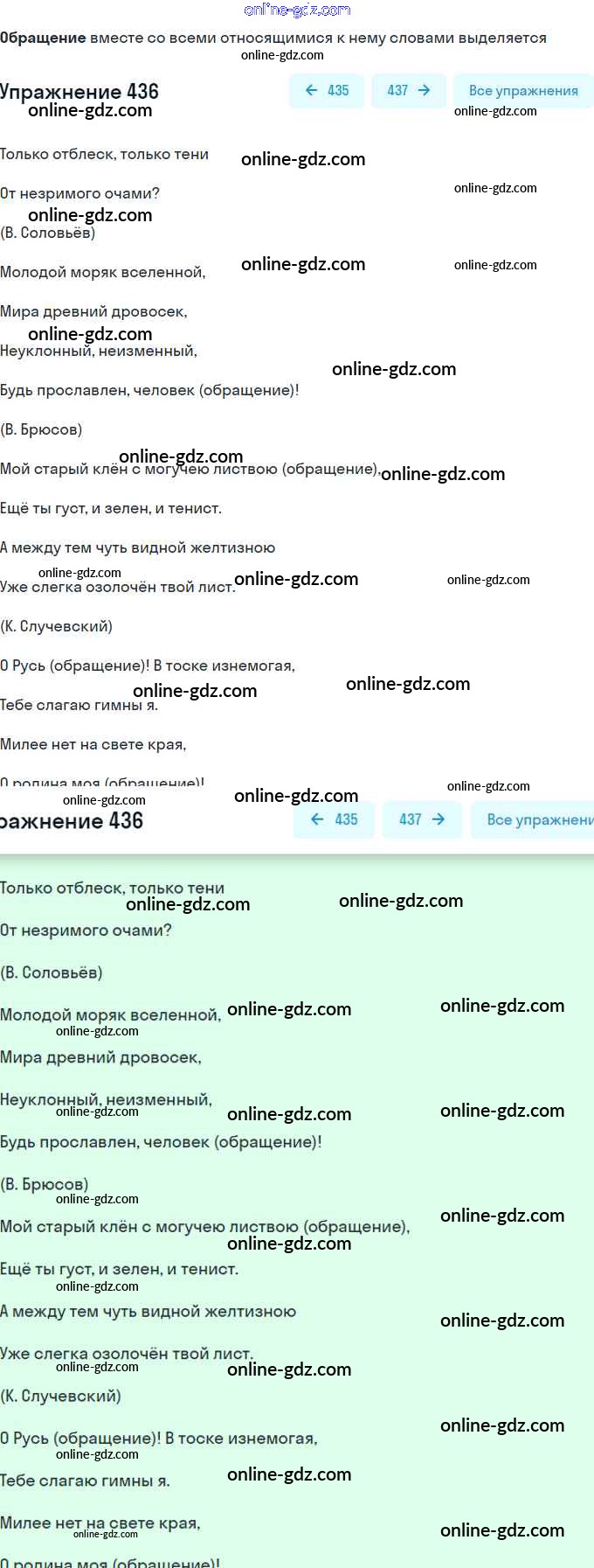 Готовые домашние задания по Русскому языку за 8 класс Учебник Рыбченкова, Александрова 2015 - Упражнения 436