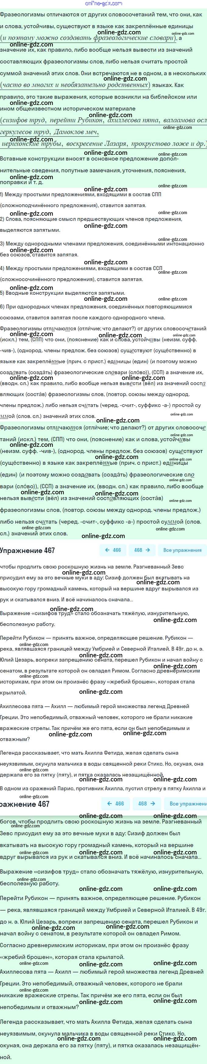Готовые домашние задания по Русскому языку за 8 класс Учебник Рыбченкова, Александрова 2015 - Упражнения 467