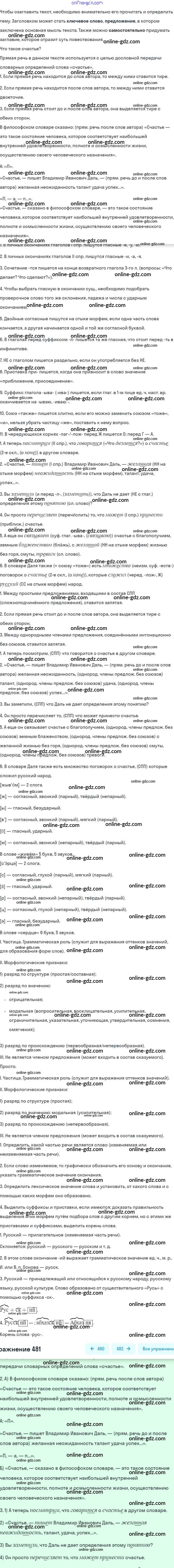 Готовые домашние задания по Русскому языку за 8 класс Учебник Рыбченкова, Александрова 2015 - Упражнения 481