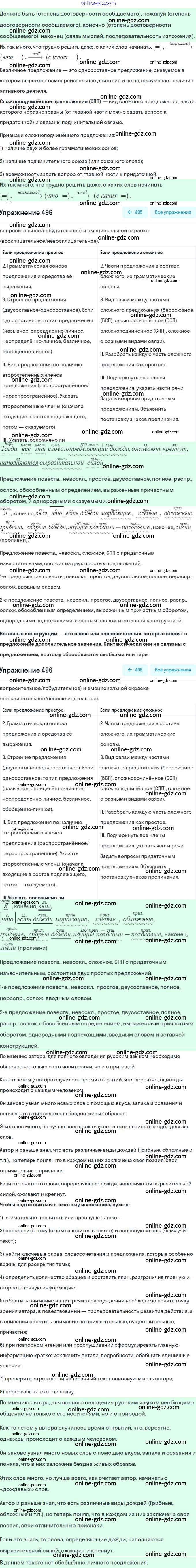 Готовые домашние задания по Русскому языку за 8 класс Учебник Рыбченкова, Александрова 2015 - Упражнения 496