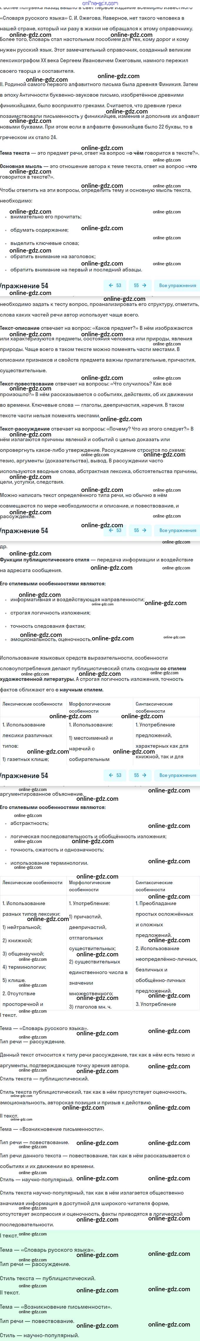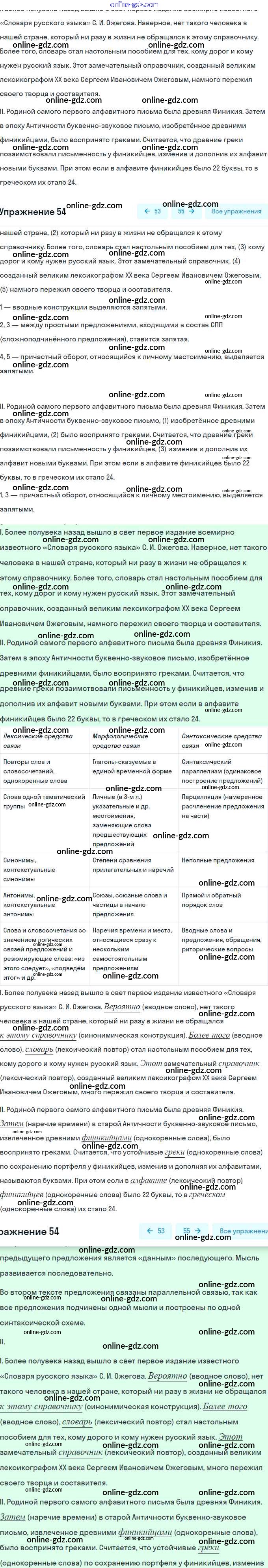 Готовые домашние задания по Русскому языку за 8 класс Учебник Рыбченкова, Александрова 2015 - Упражнения 54